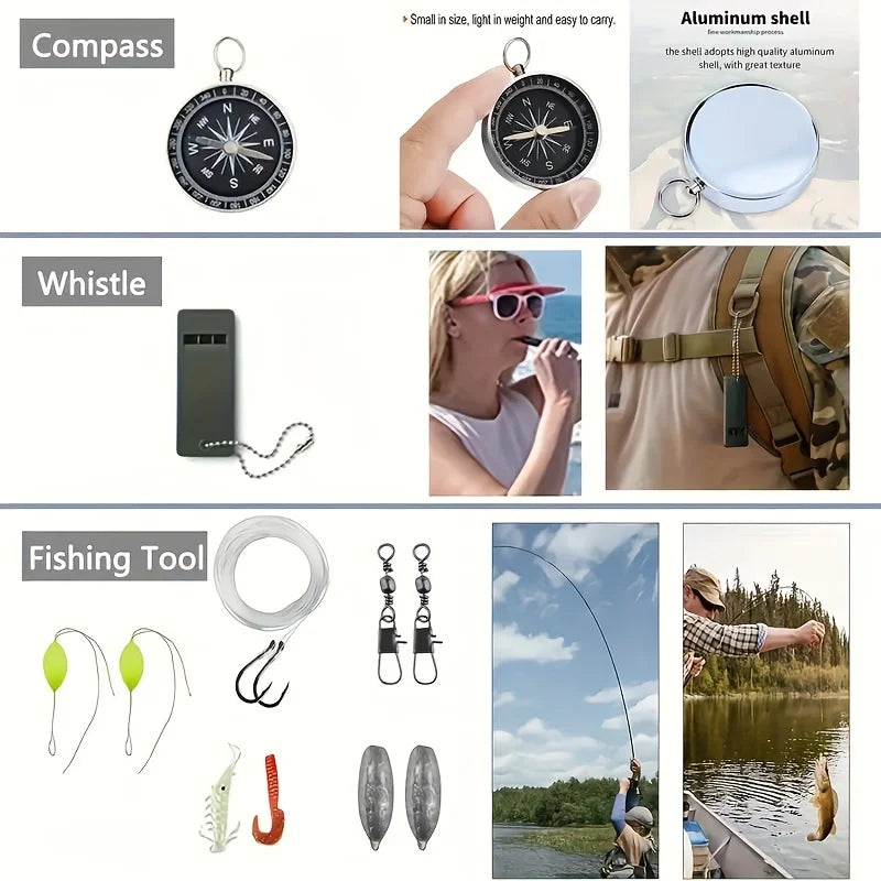57-in-1 Survival & First Aid Kit: Complete Emergency Gear with Fire Starter for Camping, Fishing & SOS Situations